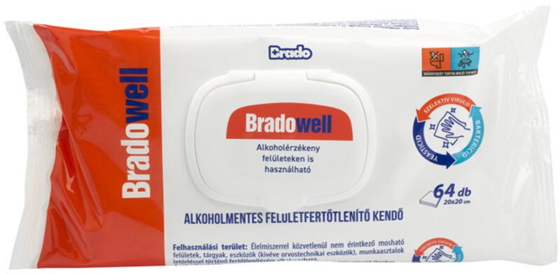 Bradoline Bradowell alkoholmentes felületfertőtlenítő kendő 64db