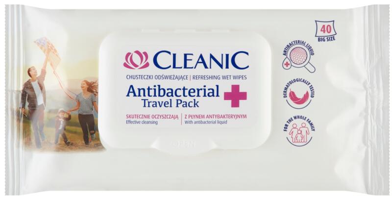 Cleanic antibacterial travel pack antibakteriális folyadékkal nedvesített frissítő törlőkendő. Kézhez és testhez. Hatásosan frissít és tisztít. A nagy törlőkendő kényelmes utazás során. Bőrgyógyászatilag tesztelt, bőrsemleges ph-érték.